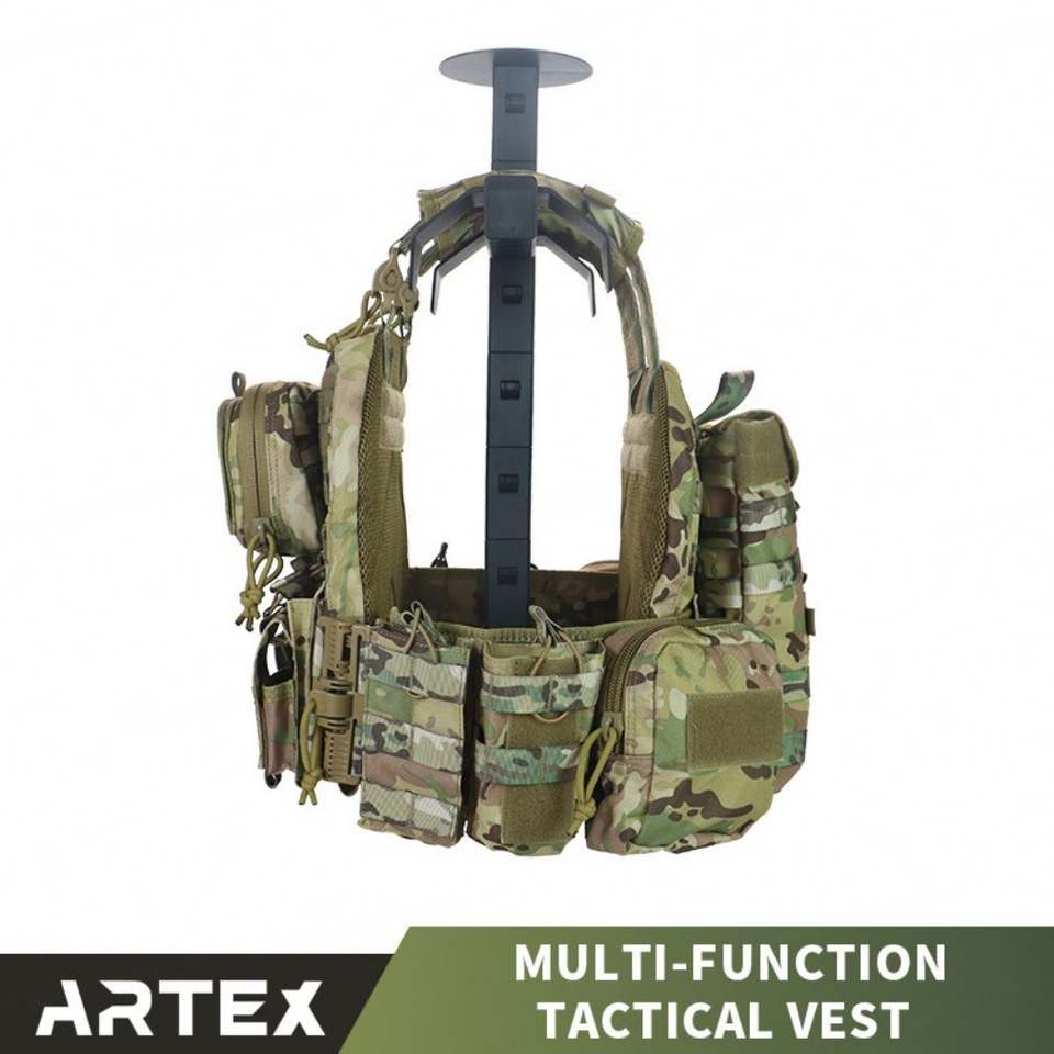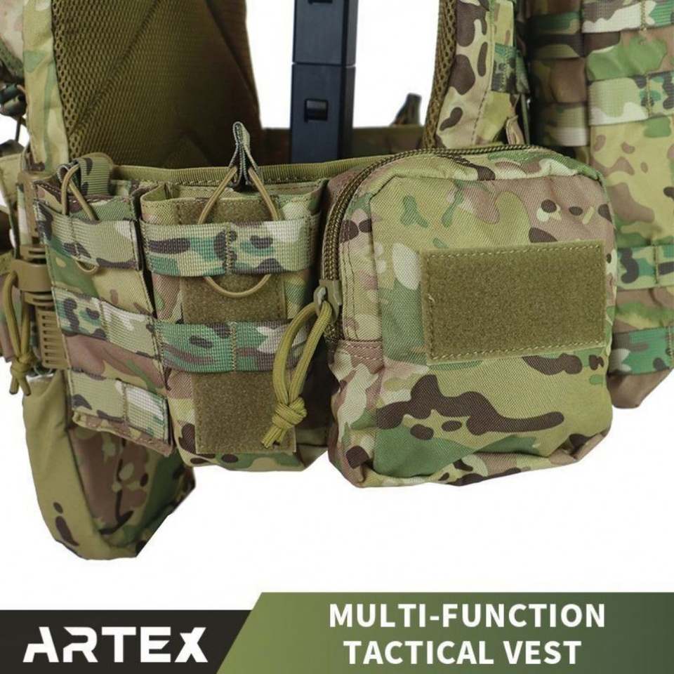 เสื้อกั๊กยุทธวิธีโพลีเอสเตอร์ 1000D แบบ MOLLE ลายพราง พร้อมช่องใส่แผ่นเกราะ