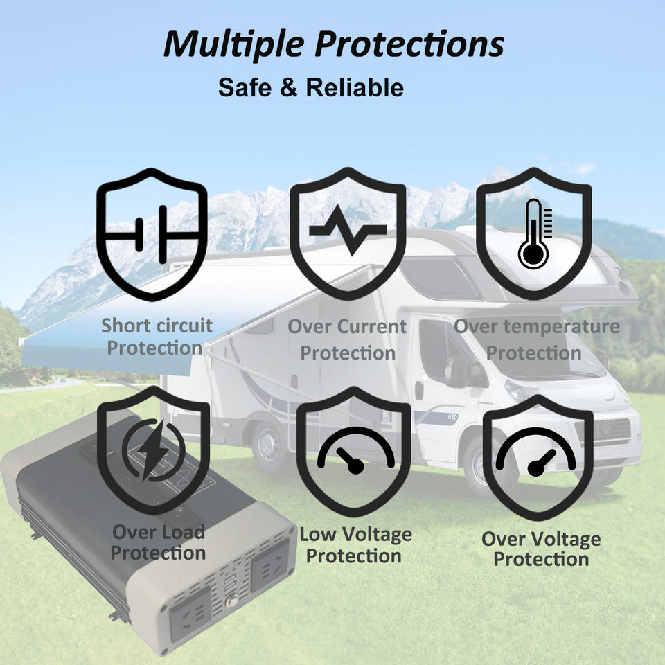 อินเวอร์เตอร์แปลงไฟ 1000W 12V DC เป็น 220V AC คลื่นไซน์บริสุทธิ์ พร้อมความถี่เอาต์พุต 50Hz/60Hz สำหรับใช้ในบ้านและยานยนต์