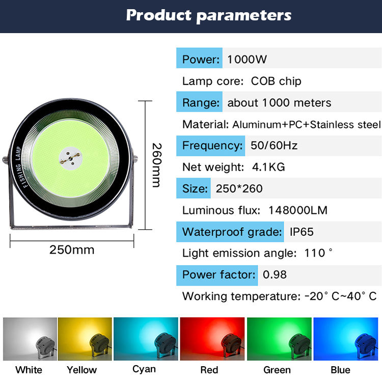 ไฟตกปลา LED สีเขียว 1000W สำหรับเรือ ใช้ล่อปลาหมึก ไฟส่องสว่างเหนือน้ำ สำหรับตกปลาตอนกลางคืน