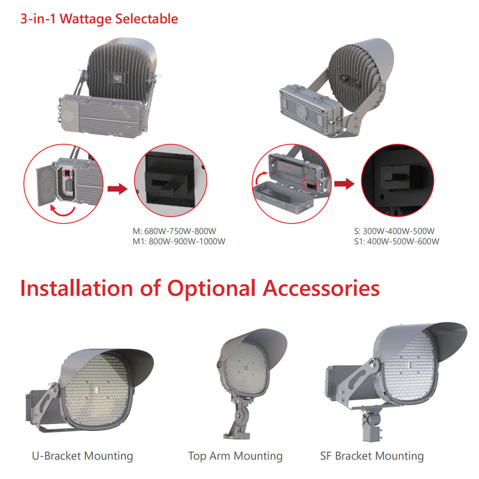 ไฟสปอร์ตไลท์ LED 1000W สำหรับสนามกีฬา ใช้กลางแจ้ง ปรับกำลังไฟได้ 600W ไฟสปอร์ตไลท์ LED สำหรับฟุตบอล รักบี้ เบสบอล เทนนิส