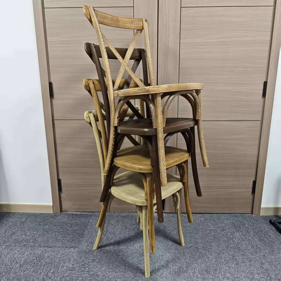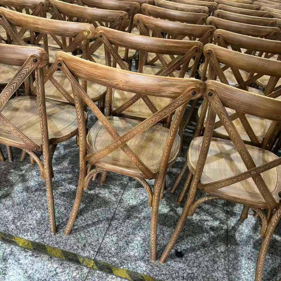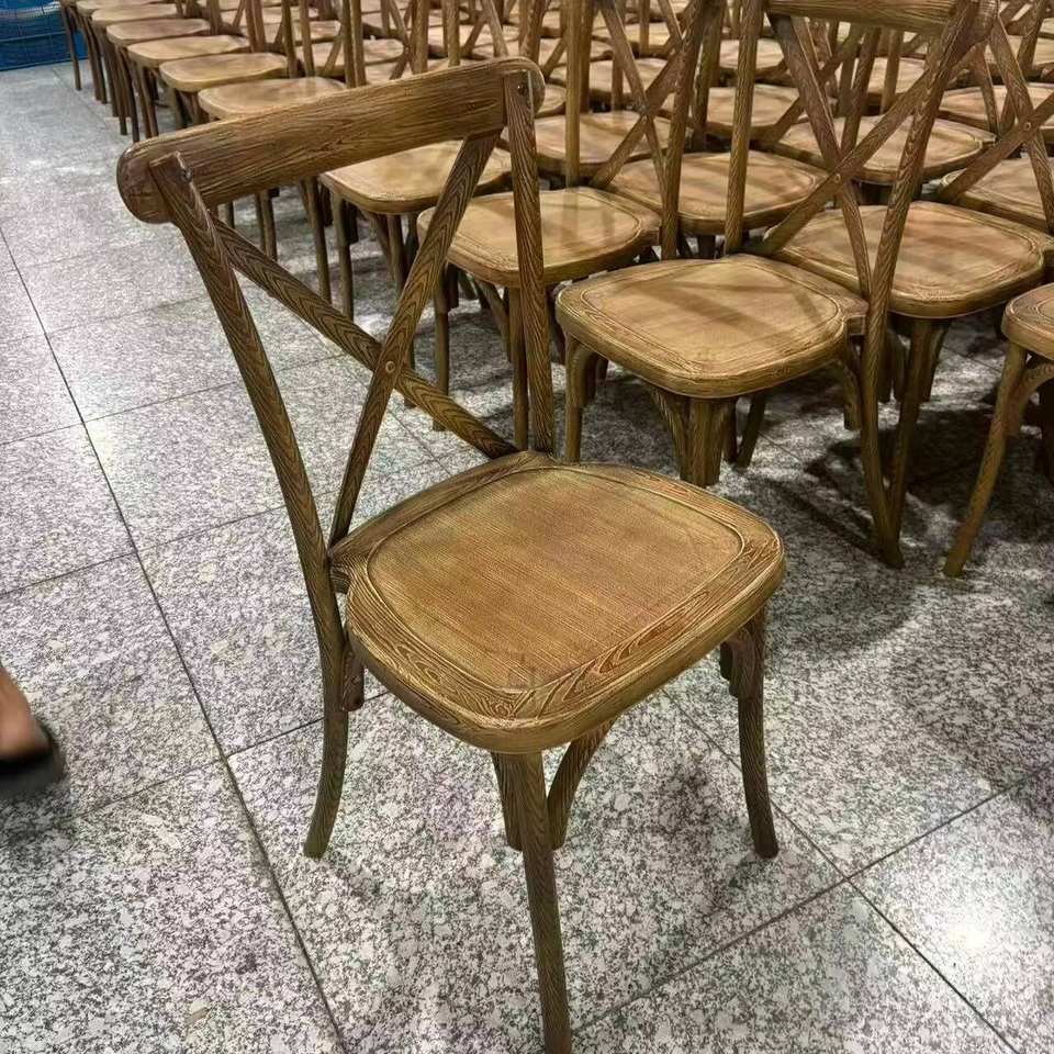 เก้าอี้ครอสแบ็คพลาสติกเรซิ่นสำหรับร้านอาหาร งานแต่งงาน คุณภาพสูง ทนทาน น้ำหนักได้ถึง 1000 ปอนด์ ดีไซน์โบราณแบบเรียบง่าย ทำจากไม้โอ๊ค