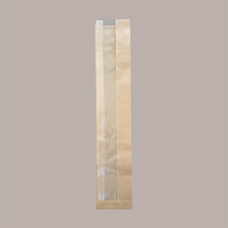 บรรจุภัณฑ์อาหาร 1000 ชิ้น ถุงกระดาษคราฟท์กันไขมัน สีน้ำตาล หน้าต่างไมโครฟ. 12+4H65 สำหรับเค้ก ขนมปัง และน้ำตาล อิตาลี รหัส 6360