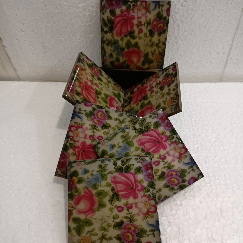 ชุดถาดรองแก้วทำจากไม้หินอ่อนทำจากเรซินสีธรรมชาติปรับแต่งได้ผลิตในอินเดีย