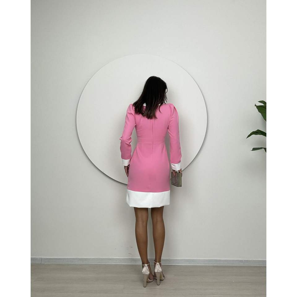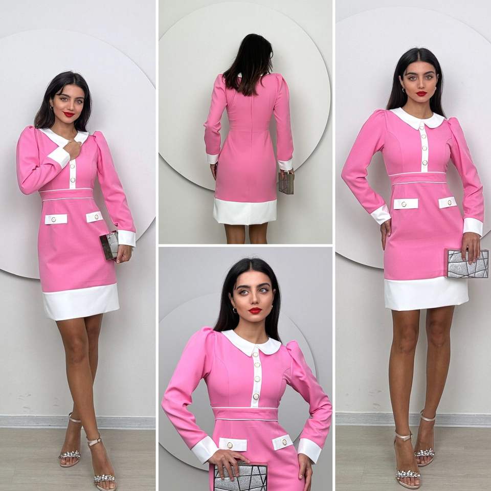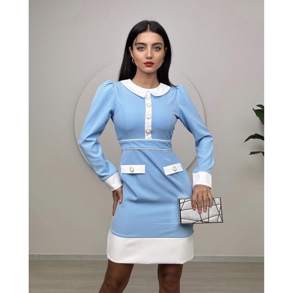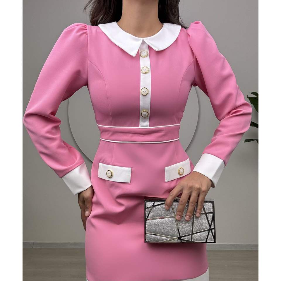 1002 ชุดเดรสทรงเข้ารูปพร้อมผ้าก๊อซสั้นแต่งขอบเอวธรรมชาติ