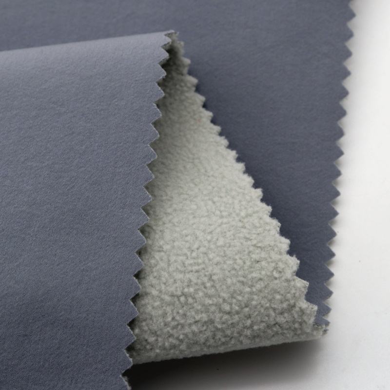 ผ้าโพลีเอสเตอร์ลายตาราง 100D ยืดได้สี่ทิศทาง ระบายอากาศได้ดี พร้อมฟิล์ม TPU สีขาว เคลือบด้วยผ้าขนแกะโพลาร์ สำหรับเสื้อแจ็คเก็ตฤดูหนาว