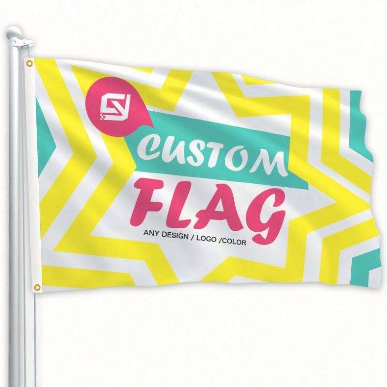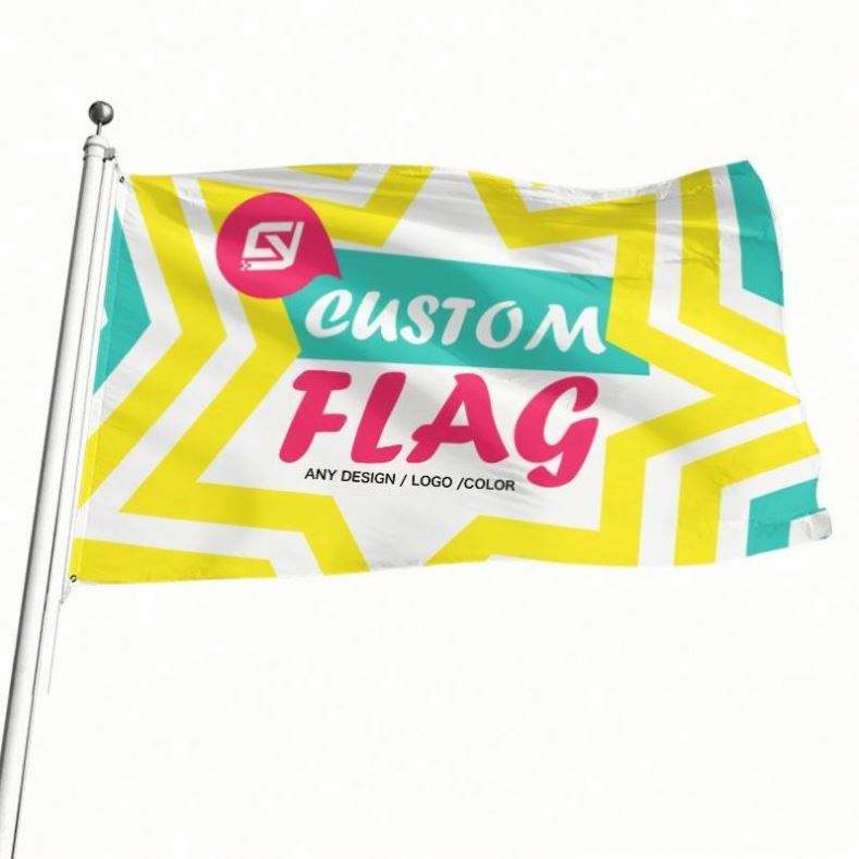ธงและป้ายโฆษณาโพลีเอสเตอร์ 100D พิมพ์ลายดิจิทัล คุณภาพดี สำหรับใช้งานกลางแจ้ง ลายดาวสีเหลือง แบบกำหนดเอง