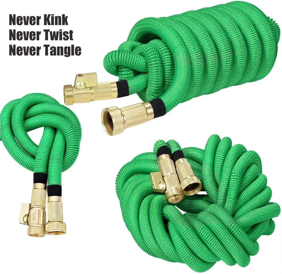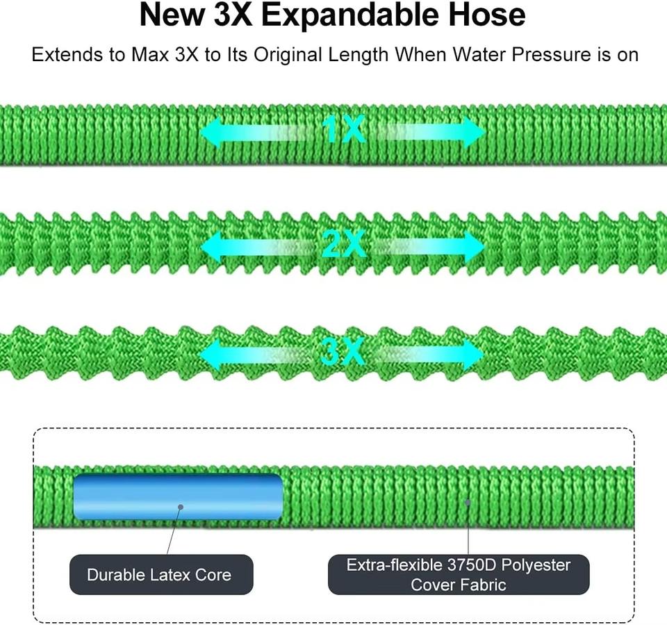 สายยางรดน้ำแบบยืดหดได้ 100 ฟุต น้ำหนักเบา ไม่หักงอ แกนยางลาเท็กซ์สี่ชั้น ขยายอัตโนมัติ ป้องกันการเสียดสี ขนาดเส้นผ่านศูนย์กลาง 3/4 นิ้ว