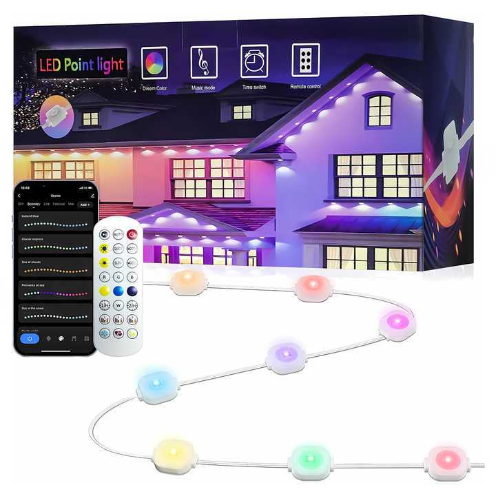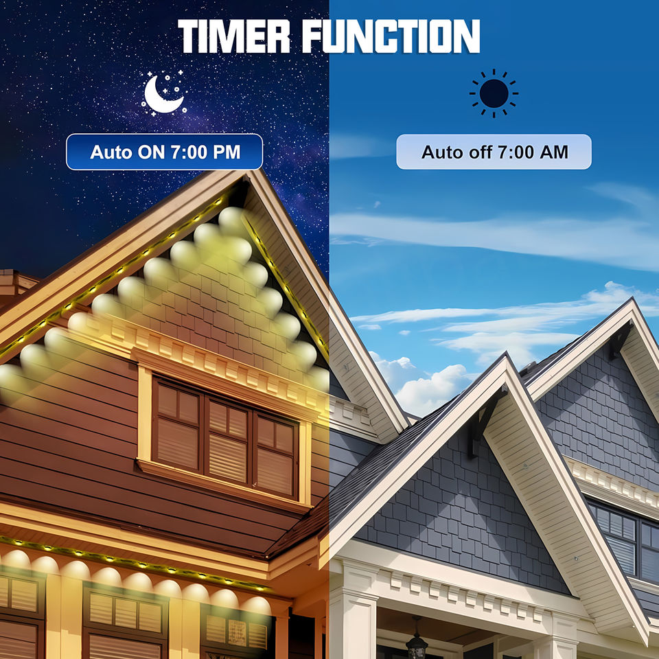 ไฟคริสต์มาสกลางแจ้งแบบถาวร RGBIC ควบคุมผ่าน WiFi ความยาว 100 ฟุต พร้อมรีโมทสำหรับตกแต่งหลังคาบ้านในงานปาร์ตี้และวันหยุด