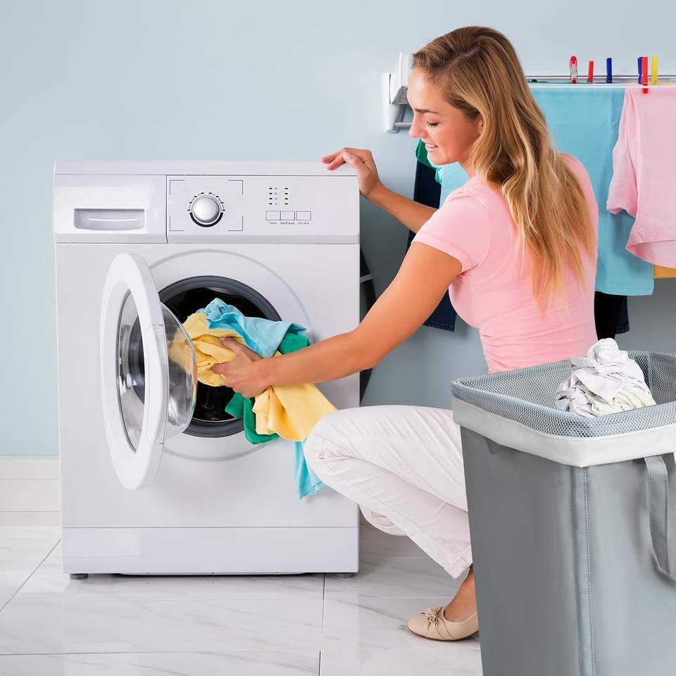 ตะกร้า100L ซักรีดแบบพับได้พร้อมล้อประหยัดพื้นที่พร้อมถุงซักแบบถอดได้
