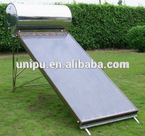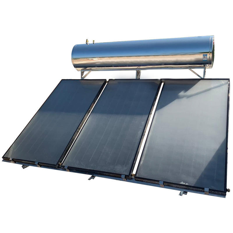เครื่องทำน้ำอุ่นพลังงานแสงอาทิตย์ 100 ลิตร พร้อมแผงรับความร้อนทองแดงแบบแบน ถังภายในสแตนเลส ระบบไฮบริดแรงดันสูง