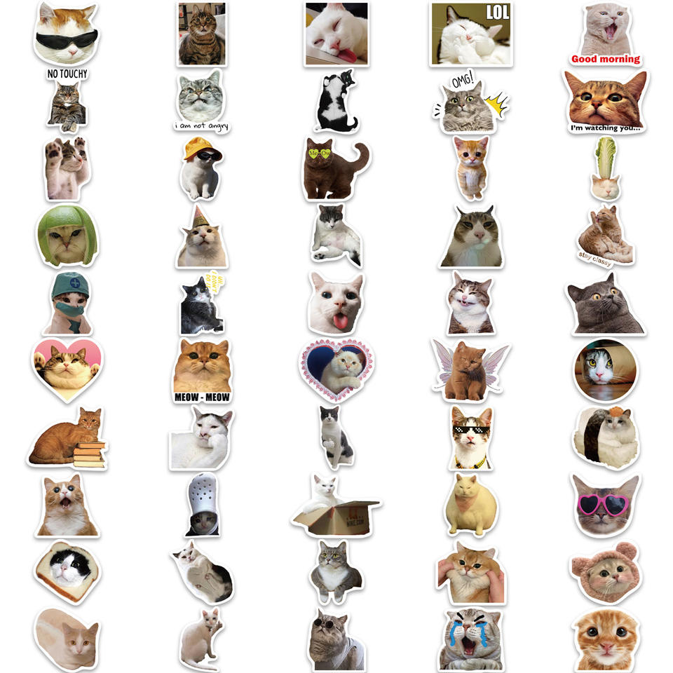 สติกเกอร์ลายแมวตลกคลาสสิก100ชิ้นสำหรับแล็ปท็อปโทรศัพท์กระเป๋าไวนิลอินเทอร์เน็ตสติกเกอร์คิตตี้น่ารัก