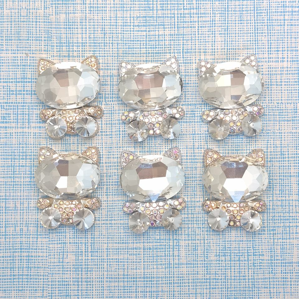 พลอยเทียมรูปแมวส่องแสงเป็นประกายระยิบระยับน่ารัก100ชิ้น/ล็อตสำหรับติดอัลบัมโทรศัพท์เคสโบว์ติดผมตกแต่งศูนย์