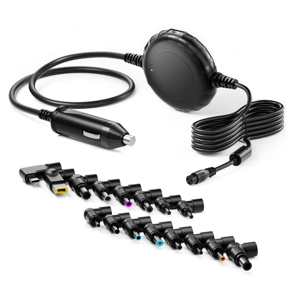 อะแดปเตอร์ชาร์จในรถยนต์สำหรับแล็ปท็อป 100W แบบ Universal พร้อมหัวต่อ 16 แบบ USB-C DC OTP สำหรับ Asus, MacBook Pro/Air, Chromebook และ Ultrabook