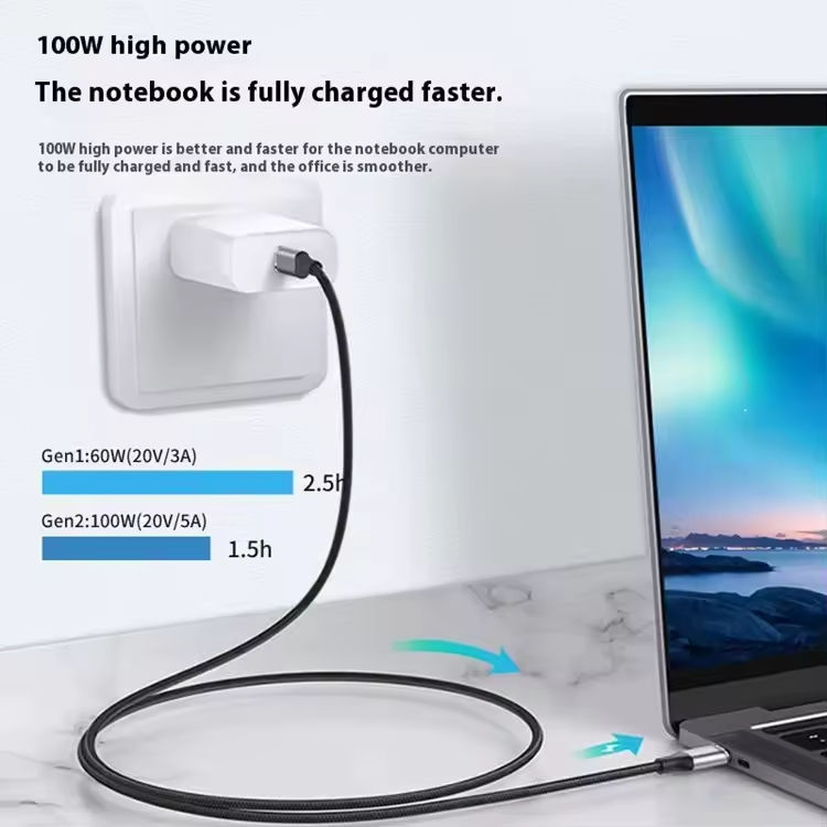 สายชาร์จ5A 100W USB C สายต่อขยาย3M 0.5M 4K 60Hz E Mark Type C 3.1 Gen2 10Gbps สายฉายภาพทีวีไนลอนแบบถัก HD
