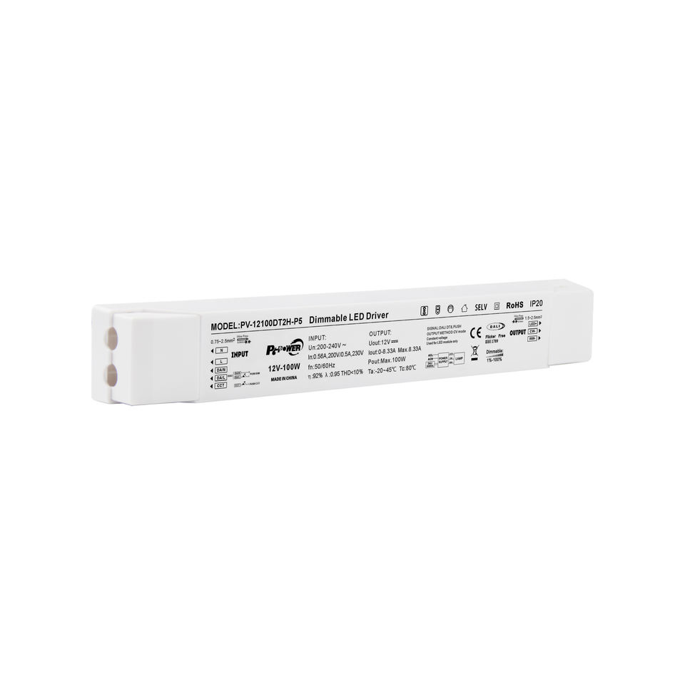 แหล่งจ่ายไฟสำหรับไฟ LED แบบหรี่แสงได้ 100W CV DALI-2 DT8 2 ช่องสัญญาณ 220-240V AC-DC 12V 24V IP20 ป้องกันการกระพริบ ไดรเวอร์ LED แบบหรี่แสงได้