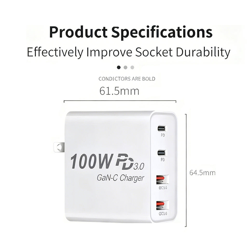 อะแดปเตอร์ชาร์จเร็ว 100W GaN PD แบบพับได้ หัวปลั๊ก Type-C พร้อมตัวแปลง ได้รับการรับรองจาก FCC สำหรับแล็ปท็อปและสมาร์ทโฟน
