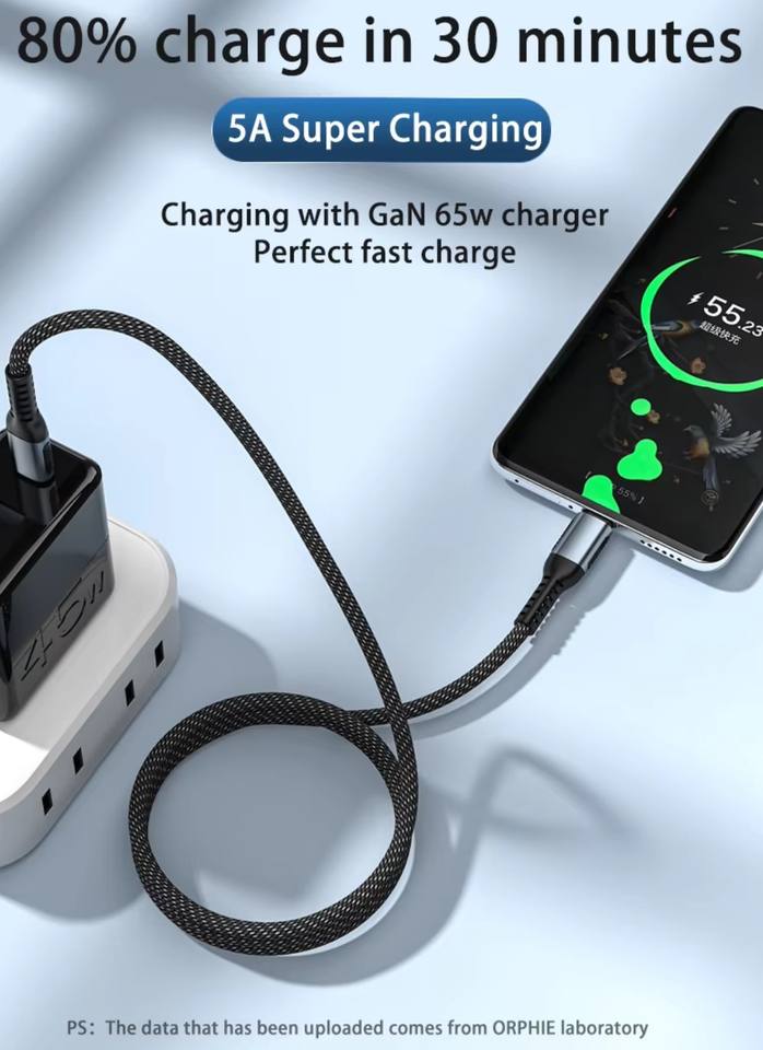 สายชาร์จ100W PD 5A ความเร็วสูง USB-C กับ C braided สำหรับ iPhone 15/16 PRO MAX Samsung Google Xiaomi ราคาจากโรงงาน