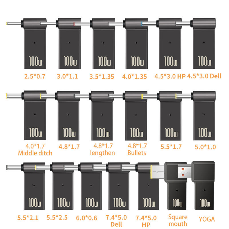 100W PD Type C เป็น DC แปลงแจ็คบาร์เรล USB C อะแดปเตอร์ตัวผู้เป็นตัวเมียสำหรับ Lenovo Dell แล็ปท็อปโทรศัพท์มือถือ