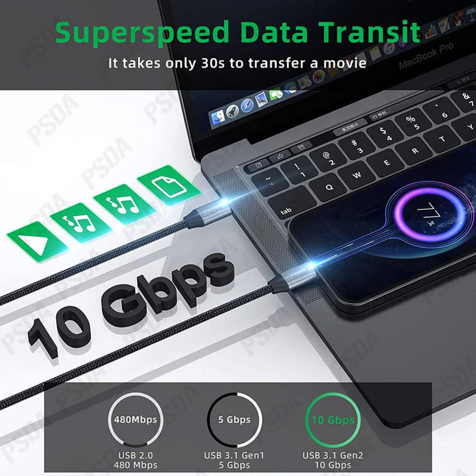 สายต่อ USB C 100W ความเร็ว 10Gbps USB3.1 Gen2 หัวงอ 90 องศา รองรับการชาร์จเร็ว 5A สำหรับ PS5 VR