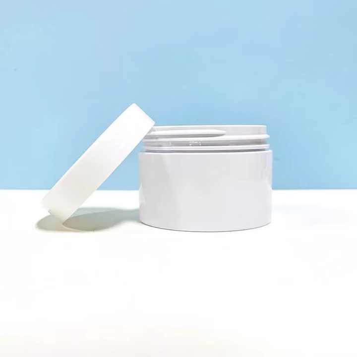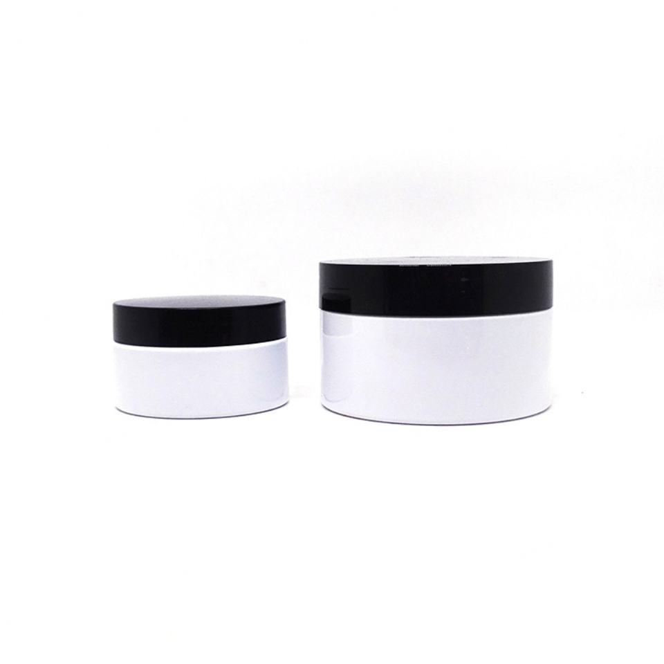 ขวดพลาสติก PET สีขาวทรงกลมขนาด 100 มล. 120 มล. 150 มล. 8 ออนซ์ สำหรับครีมบำรุงผิว เจล สครับขัดผิว บัตเตอร์ แฮร์แว็กซ์ พร้อมโลโก้ตามสั่ง