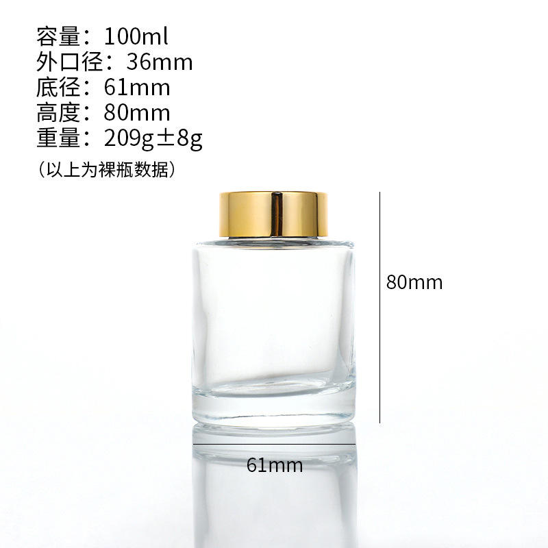 ขวดน้ำหอมแก้วแบบใหม่ขนาด 100 มล. 120 มล. 200 มล. พร้อมฝาสีทองและแท่งไฟเบอร์ รูปทรง JoMalone