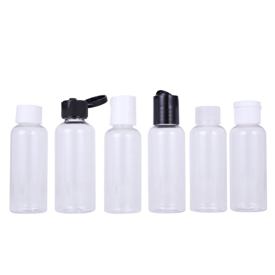 ขวดสีดำขนาด 100 มล. 150 มล. 200 มล. 250 มล. 300 มล. พร้อมฝาแบบดิสก์ ขวดพลาสติก PET สำหรับแชมพู สบู่เหลว ขวดพลาสติกสำหรับเดินทาง ฝาแบบกดและแบบขันเกลียว