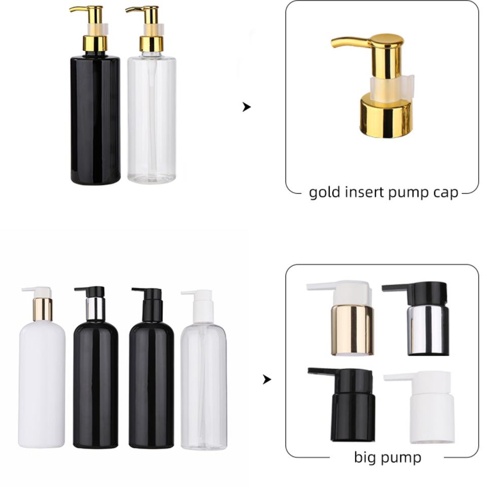 ขวดทรงกระบอกเปล่าขนาด 100 มล. 250 มล. 300 มล. 500 มล. สำหรับแชมพู ครีมนวดผม พร้อมหัวปั๊ม สำหรับบรรจุภัณฑ์โรงแรม โลชั่นทำความสะอาดผิวหน้า