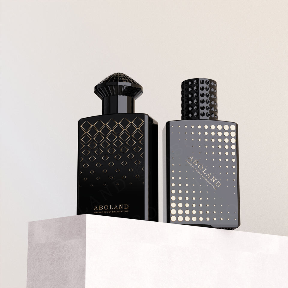 ขวดน้ำหอมแก้วหรูหราขนาด 100 มล. พร้อมหัวฉีดแบบปั๊ม พิมพ์ลายพื้นผิวได้ตามต้องการ บรรจุภัณฑ์พรีเมียมพร้อมกล่อง