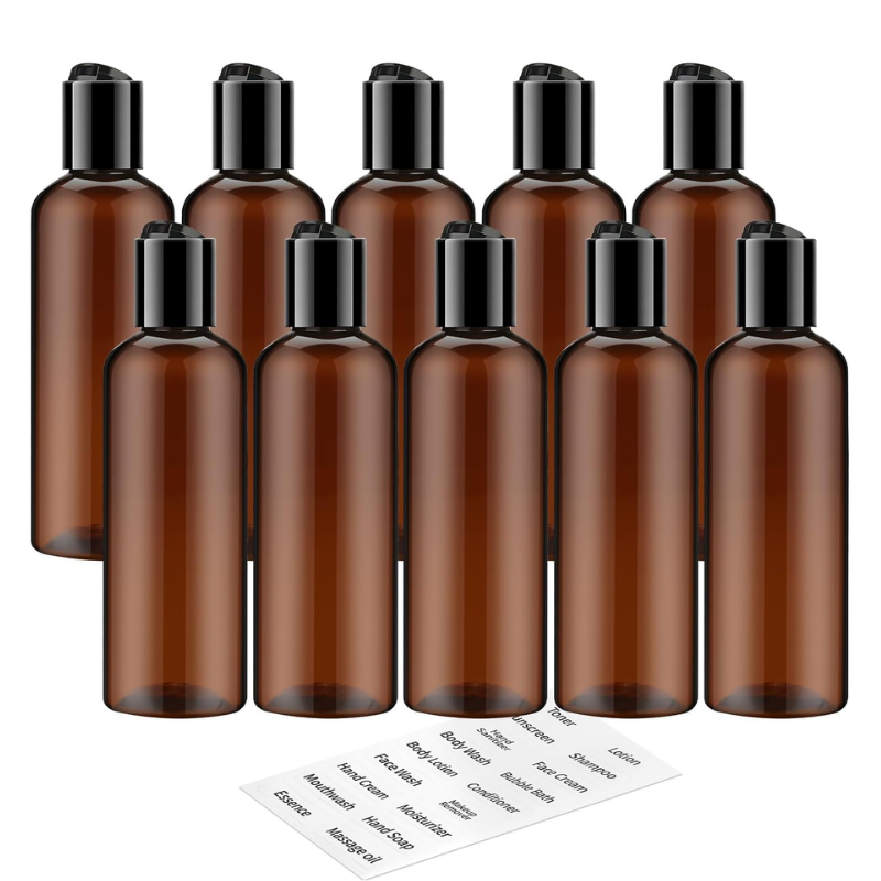 ขวดพลาสติกสำหรับสัตว์เลี้ยงขนาด100มล. ภาชนะใส่เครื่องสำอางพร้อมฝาปิดแผ่นดิสก์บรรจุภัณฑ์แชมพูสำหรับเดินทางเติมได้