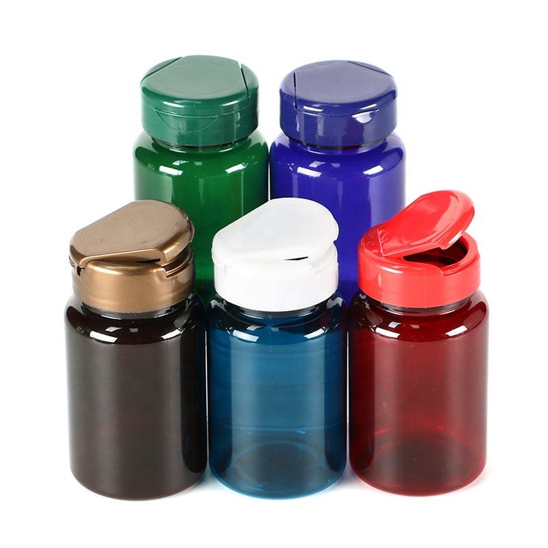 ขวดพลาสติก PET ขนาด 100 มล. ยาแท็บเล็ตแคปซูลเปล่ายาบรรจุภัณฑ์อาหารสุขภาพวิตามินอาหารเสริมพร้อมฝาปิดหมวก