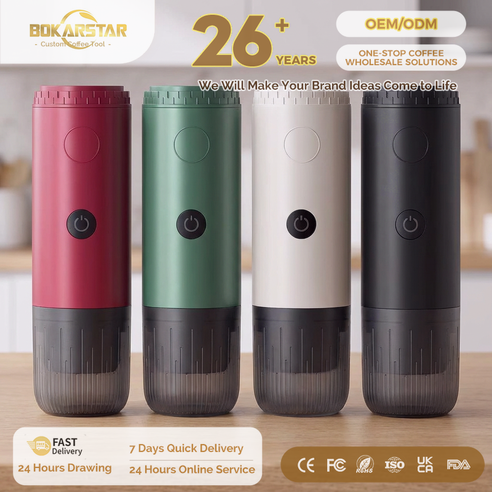 เครื่องชงกาแฟเอสเพรสโซแบบพกพาขนาด 100 มล. ผลิตในอิตาลี ใช้งานกึ่งอัตโนมัติ ทำจากสแตนเลส ใช้ไฟฟ้าผ่านพอร์ต USB สำหรับแคปซูลกาแฟ