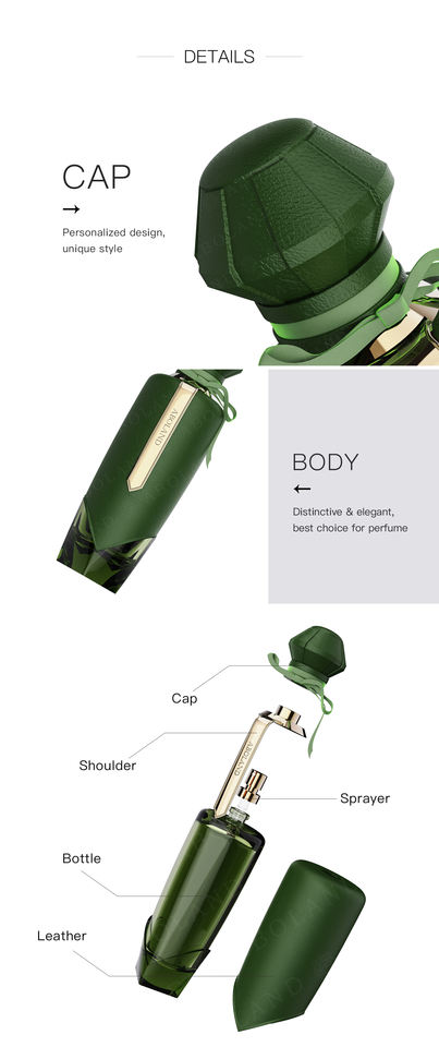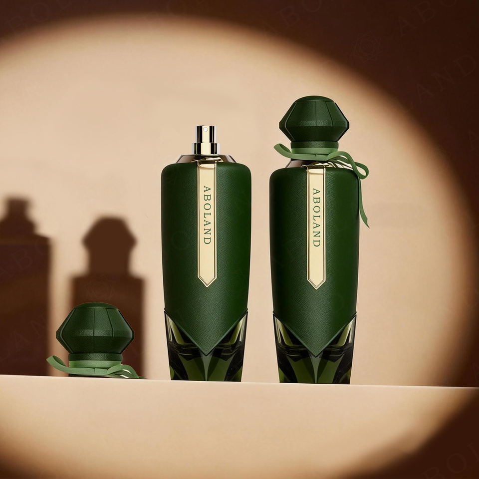 ขวดน้ำหอมแก้วดีไซน์พิเศษหรูหราขนาด 100 มล. พร้อมหัวฉีดแบบพ่น ฐานหนา ขวดเปล่า ปรับแต่งฝาและโลโก้ได้ บรรจุภัณฑ์พรีเมียม