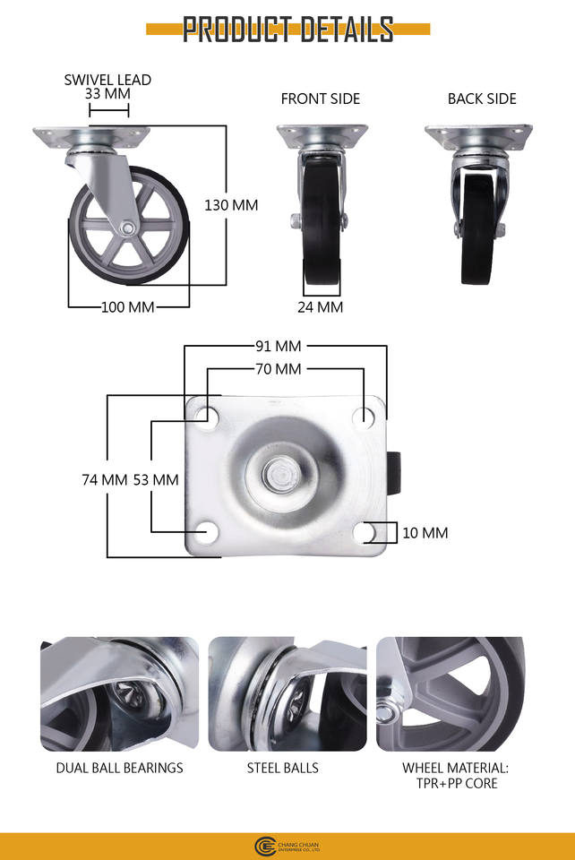 4นิ้ว (100มม.)เส้นผ่าศูนย์กลางล้อ