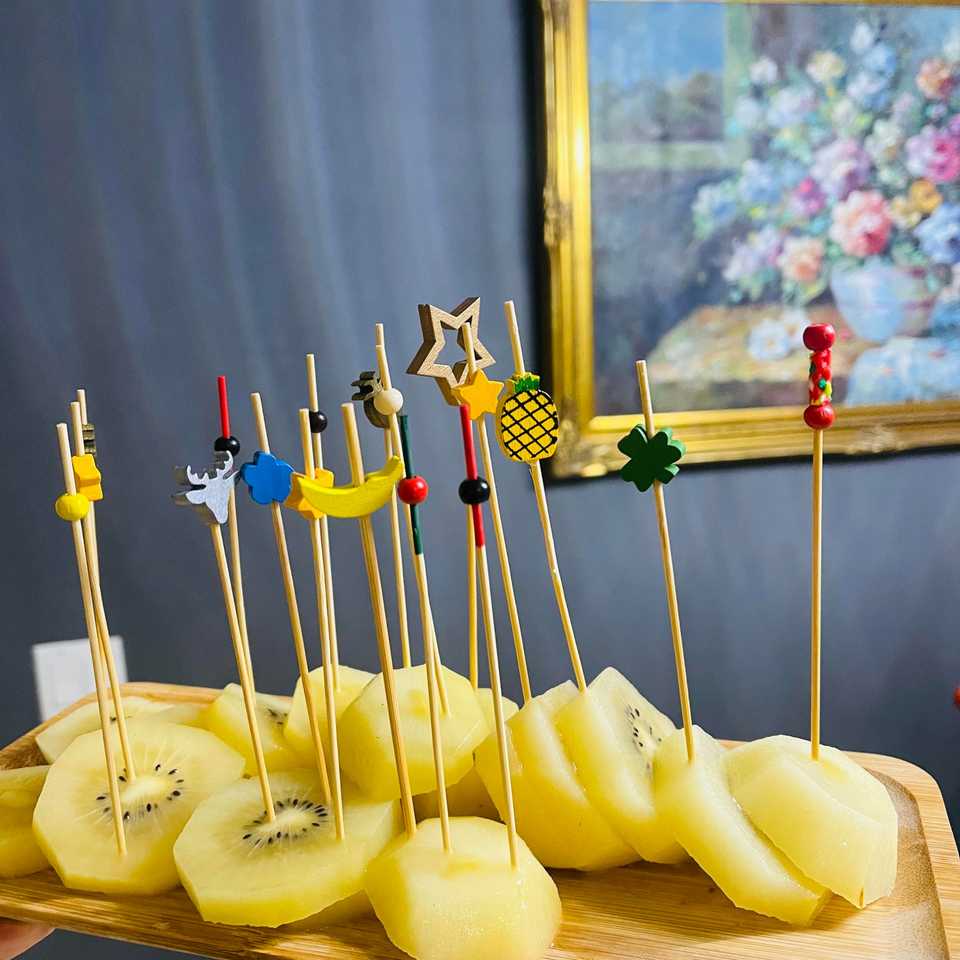ไม้จิ้มฟันผสมอาหาร5นิ้วสำหรับค็อกเทลทำจากไม้ไผ่100ชิ้นสำหรับเครื่องดื่มชาร์คิวรีและอุปกรณ์ปาร์ตี้ผลไม้