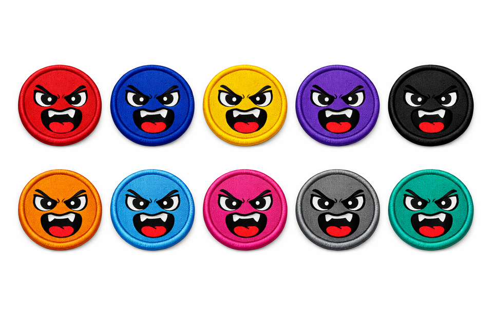แพทช์ปักลายหน้าโกรธ 100 ชิ้น รีดติดหรือเย็บติดเสื้อผ้า กระเป๋า หมวก มีให้เลือก 10 สี
