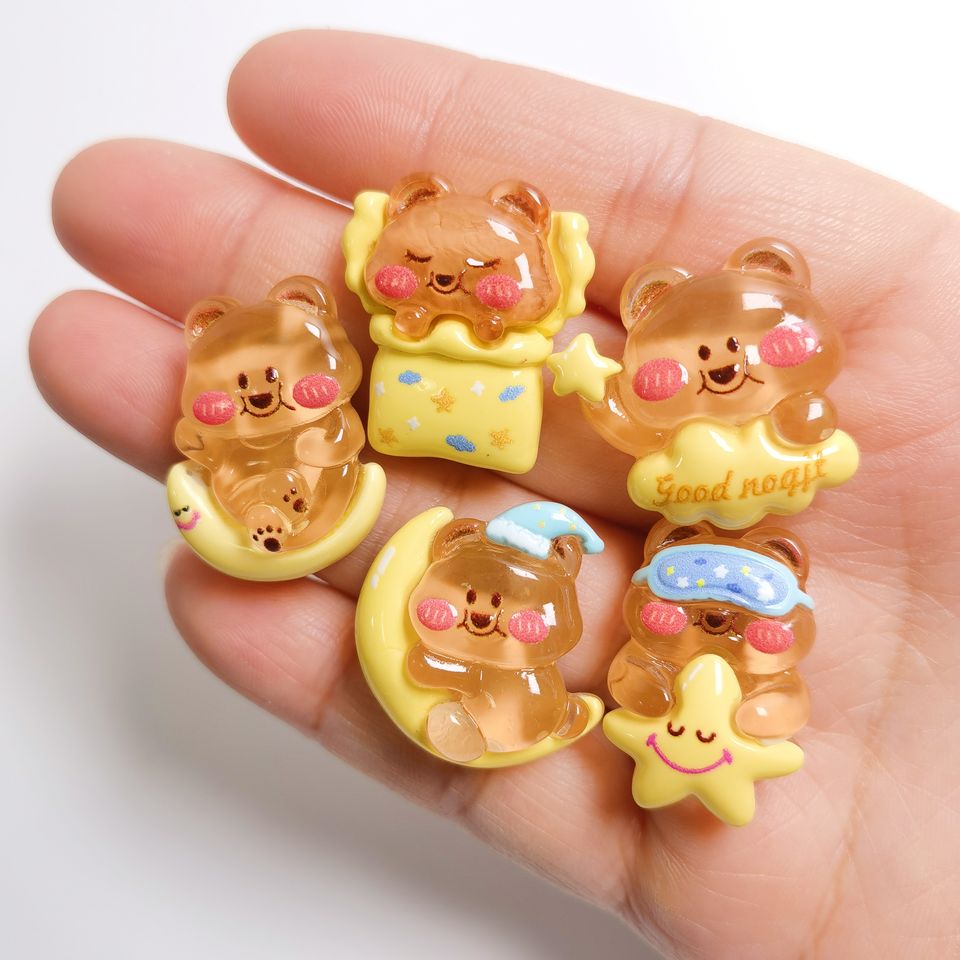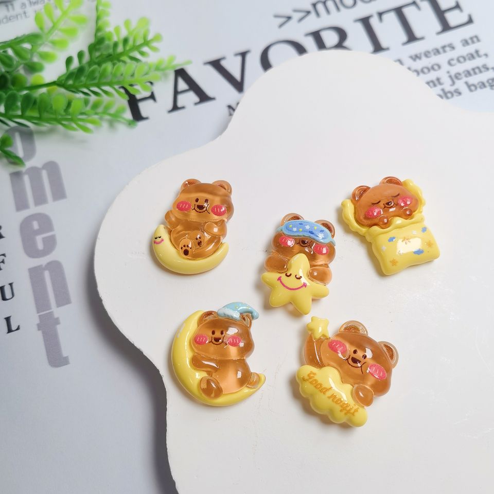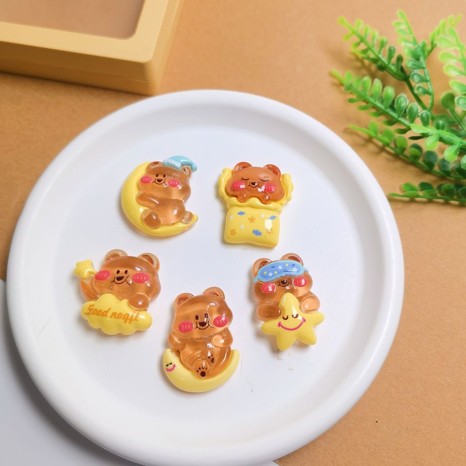เรซิ่นรูปสัตว์การ์ตูน ดวงจันทร์ ดาว หมี 100 ชิ้น แบบหลังแบน สำหรับตกแต่ง DIY โบว์ติดผมเด็ก อุปกรณ์เสริมตกแต่งเคสมือถือ