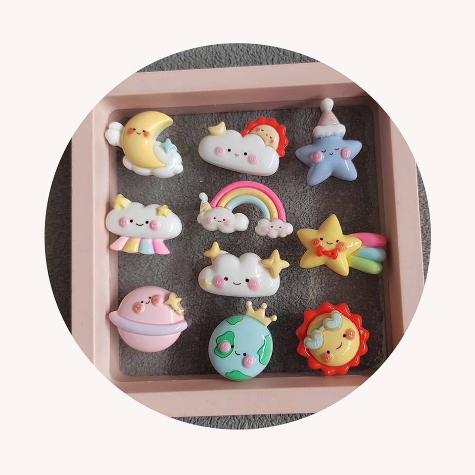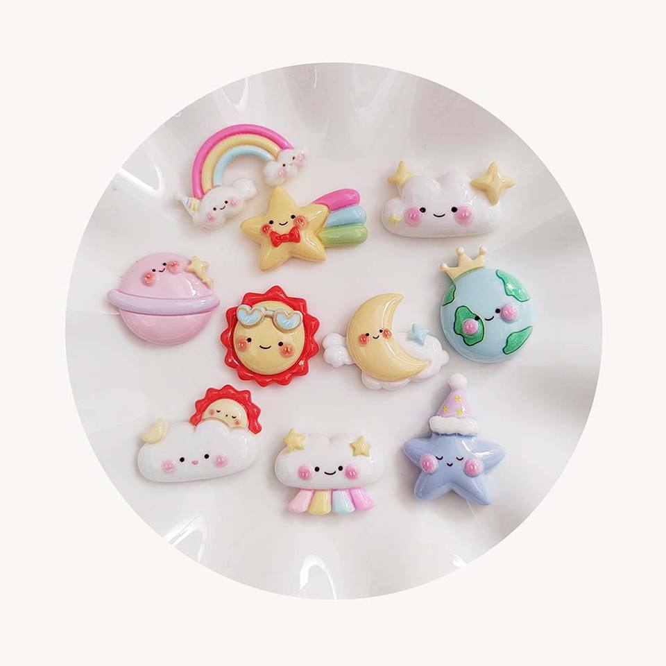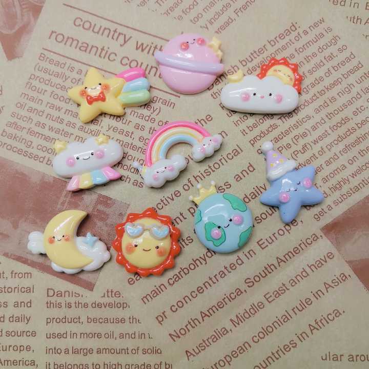 เรซิ่นรูปการ์ตูนดวงอาทิตย์ ดาว เมฆ สายรุ้ง ดาวเคราะห์ แบบแบน 100 ชิ้น สำหรับตกแต่งโทรศัพท์มือถือ DIY