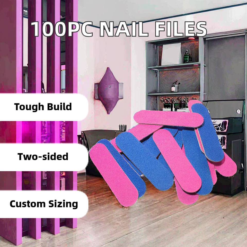 ตะไบเล็บสองด้าน 100 ชิ้น แบบตรง/ลายเพชร กระดาษทรายสำหรับทำเล็บมือและเล็บเท้า สำหรับตกแต่งเล็บ ทำจากฟองน้ำ ความหยาบ 80-220 กริต