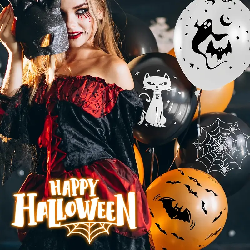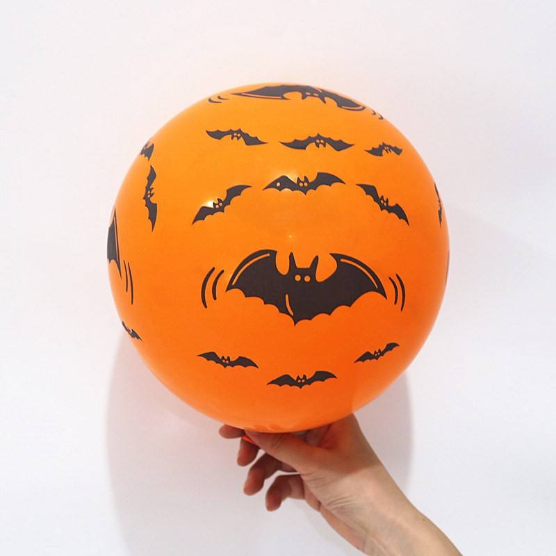 ลูกโป่งยางฮาโลวีน12นิ้วสีดำสีส้มสีขาวกับค้างคาวใยแมงมุมฟักทองพิมพ์ลายแบบสุ่ม100ชิ้น