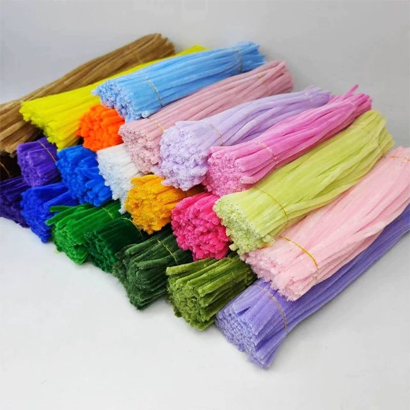 เชือกเชนิลหลากสี 100 ชิ้น อุปกรณ์งานฝีมือ สีขาว ชมพูอ่อน ที่ทำความสะอาดหลอด ของเล่นเสริมพัฒนาการ ชุดงานฝีมือเชนิล