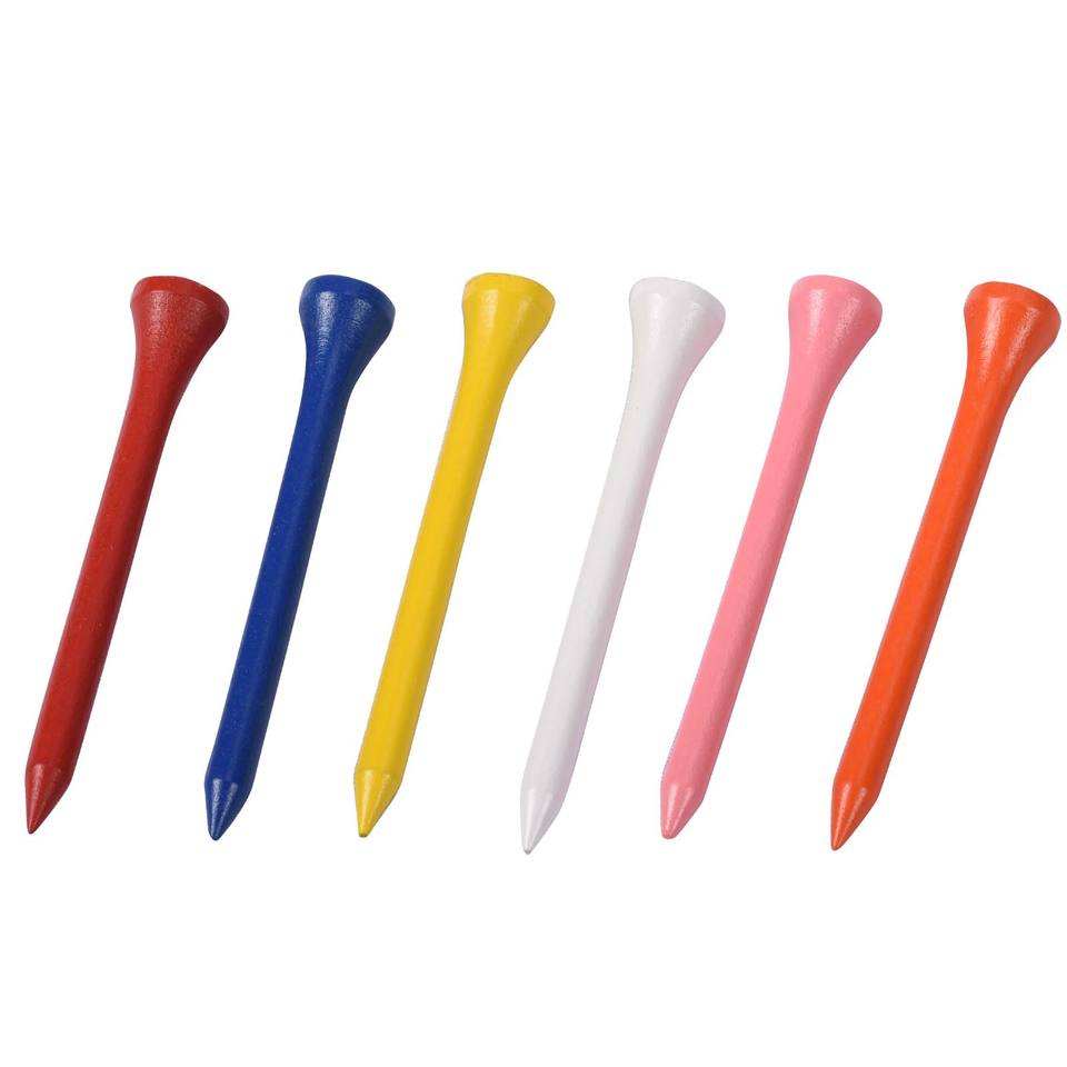 ทีตีกอล์ฟไม้ไผ่ 100 ชิ้น/ถุง รับทำโลโก้ ขนาด 42 มม./54 มม./70 มม./83 มม. หลายสี ทนทาน ทำจากไม้ธรรมชาติ สำหรับเล่นกอล์ฟ