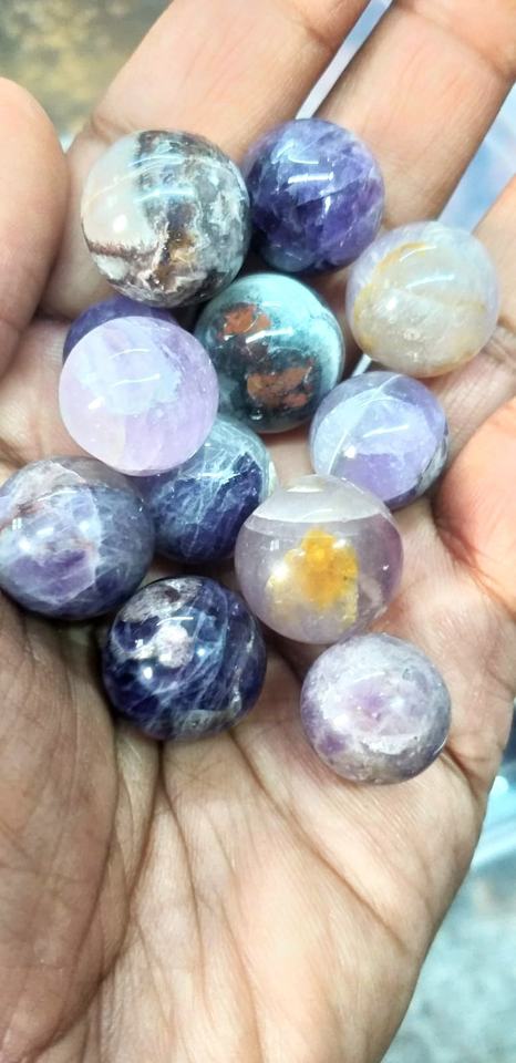 ลูกบอลอะมีทิสต์ธรรมชาติขนาดเล็ก 15-20 มม. ขัดเงา แกะสลัก หินคริสตัลบำบัด รูปทรงรัก ของตกแต่งบ้านและโต๊ะทำงาน