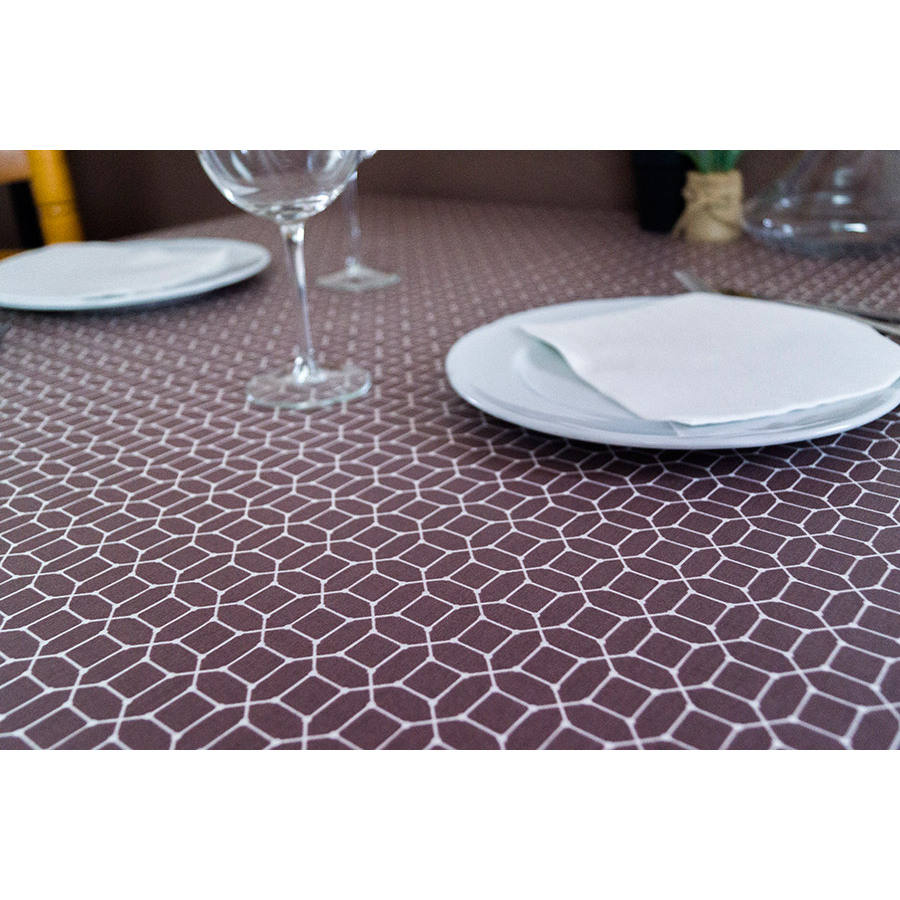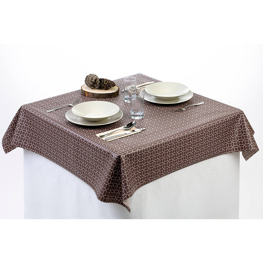 ผ้าปูโต๊ะพิมพ์ลายหกเหลี่ยมอัลบา พลัส เอ็กซ์ตร้าแฟบริค ขนาด 100x100 ซม. ตัดเย็บตามขนาด 96x96 ซม. สำหรับธุรกิจ B2B