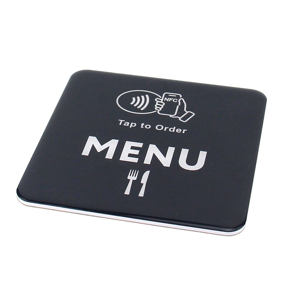 การ์ด PVC อีพ็อกซี่ NFC 100x100มม. พร้อมชิป GSC RFID 1K แตะทันทีสำหรับเมนูรีวิว Google กันน้ำความถี่13.56MHz สำหรับโรงแรม