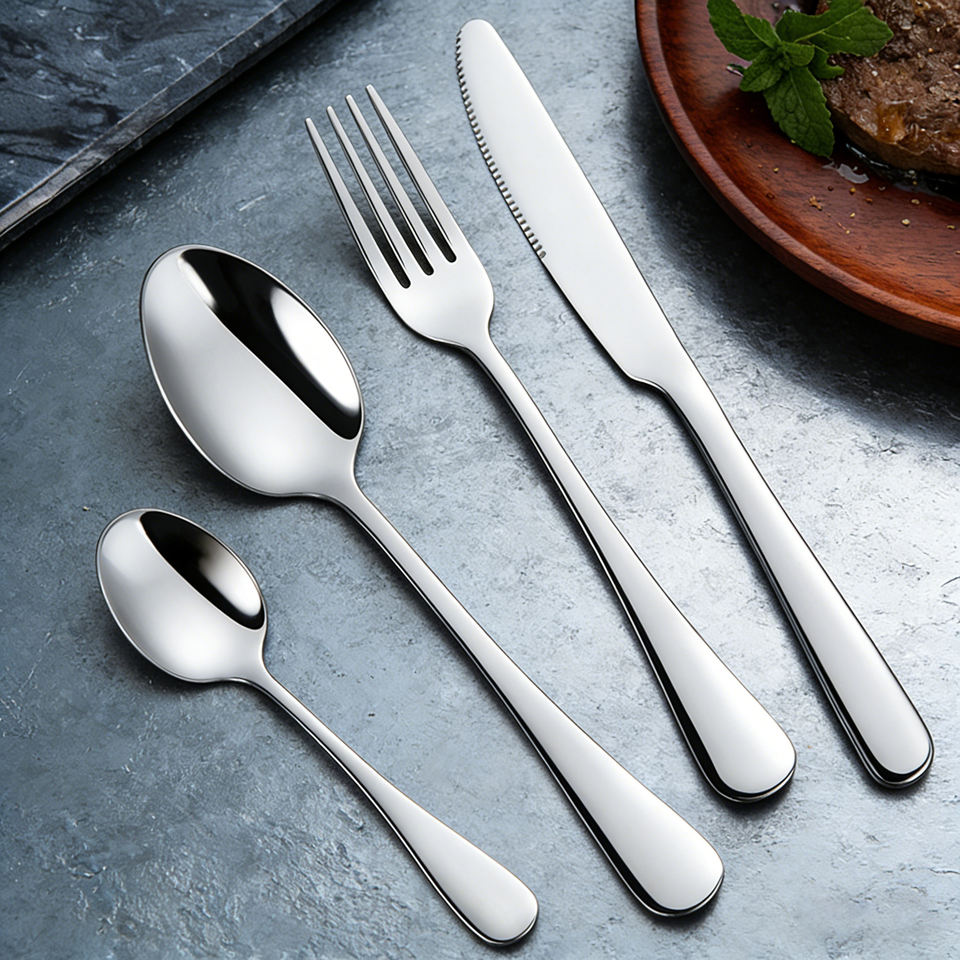 บริการขายส่งแบบครบวงจร 1010 ชิ้น ชุดช้อนส้อมสแตนเลส 410 คุณภาพสูง ขัดเงาแบบกระจก สำหรับร้านอาหาร