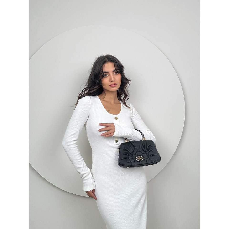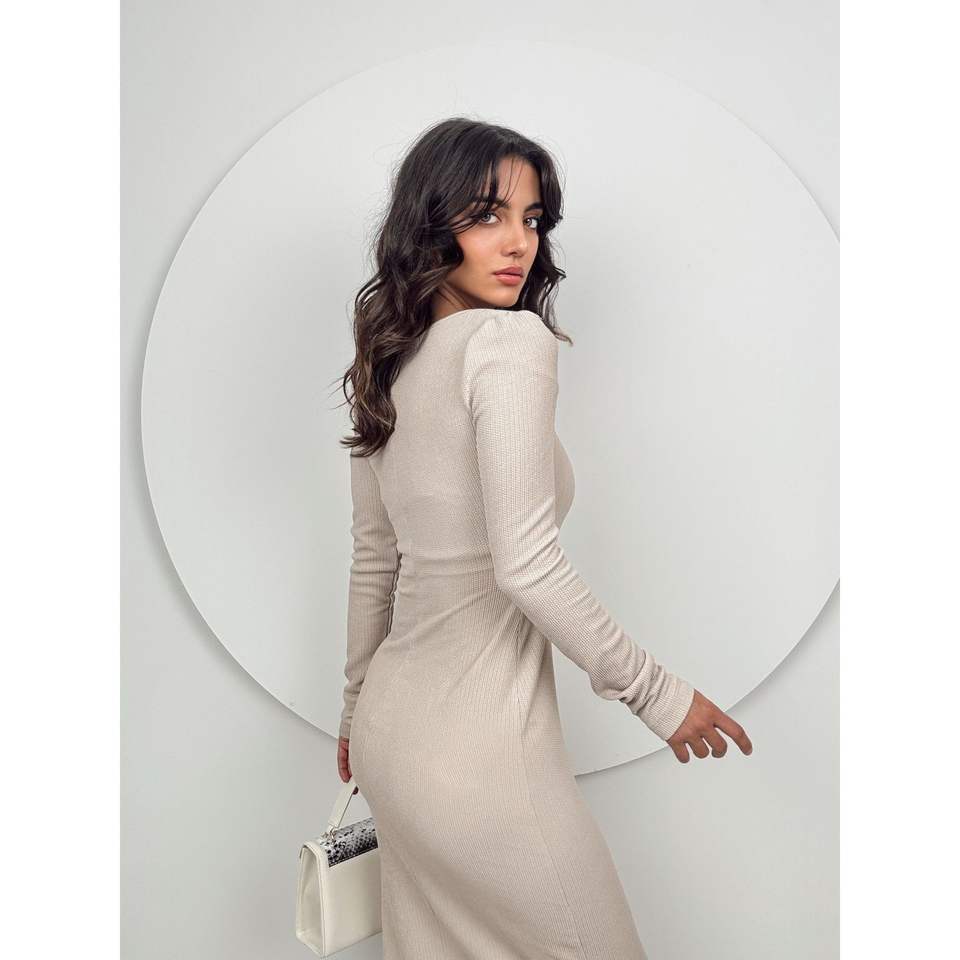 1014 ชุดเดรสผ้าถักคอวีทรงเข้ารูปพร้อมดีเทลแฟชั่นเรียบง่าย