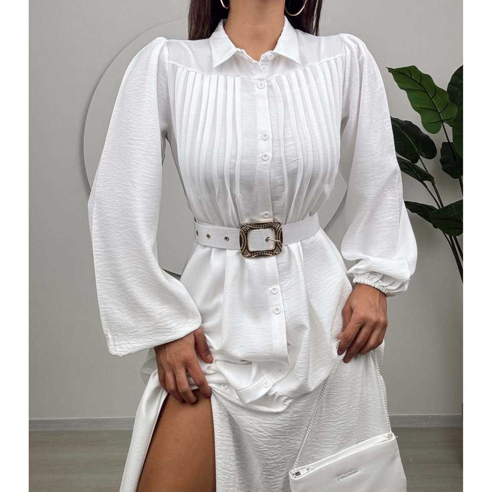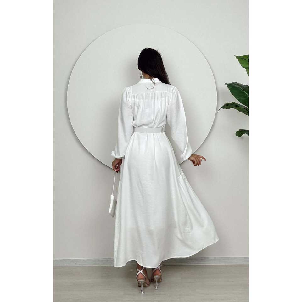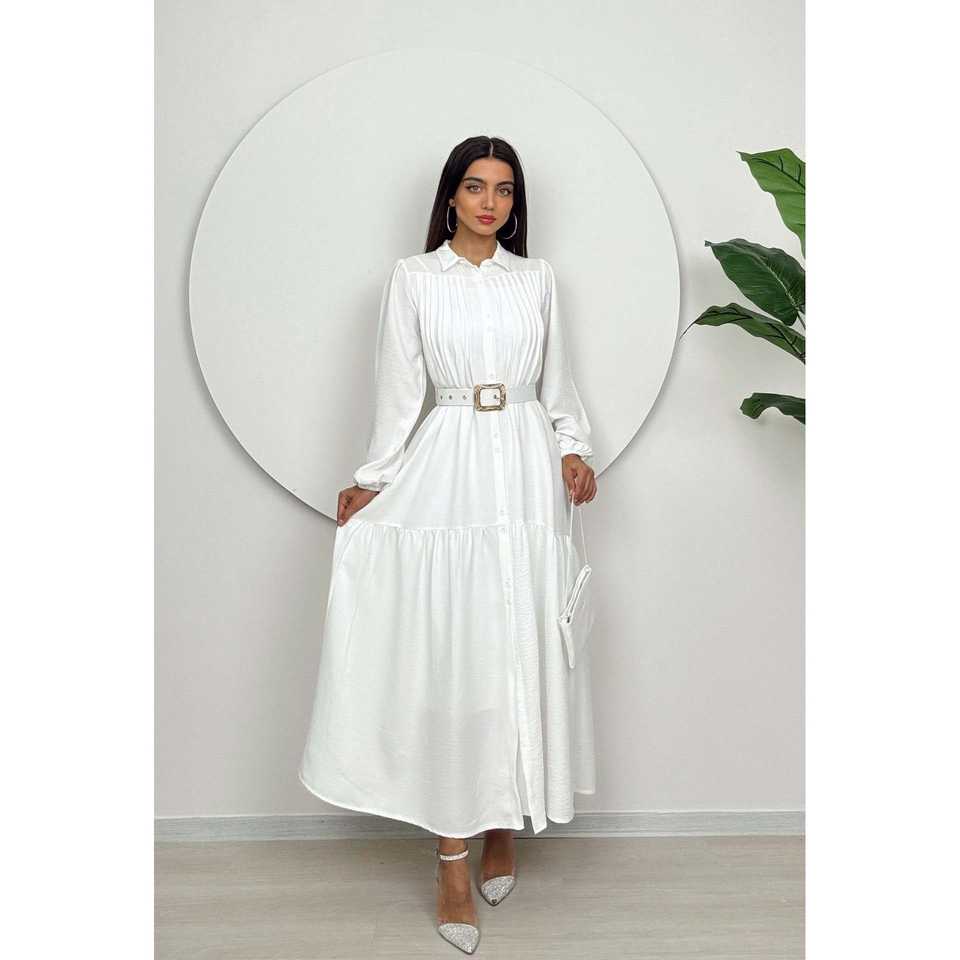 ชุดเดรสทรงเอไลน์ผ้าซาตินริบสองชิ้น รุ่น 1015 เอวธรรมชาติ ระบายอากาศได้ดี