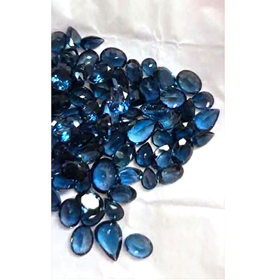 พลอยโทแพซสีน้ำเงินลอนดอนธรรมชาติ 104 เม็ด ขนาด 7x9 10x8 มม. รูปไข่ 8x6 12x8 มม. รูปทรงลูกแพร์ น้ำหนัก 235 กะรัต ขายโดย Iroc Sales เดือนธันวาคม ราคา 658 ดอลลาร์สหรัฐ