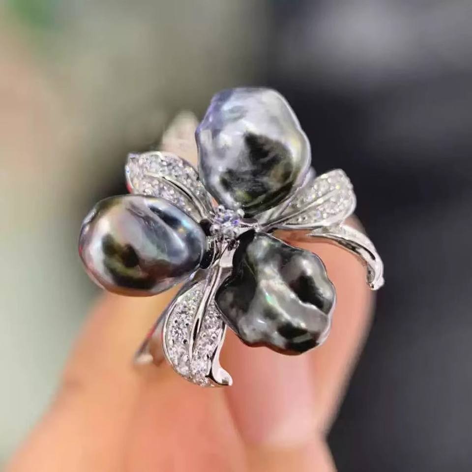 อุปกรณ์ทำเครื่องประดับมุก DIY 10536 แหวนเงินแท้ S925 พร้อมฐานตั้งเครื่องประดับเงินแฟชั่น สำหรับใส่ลูกปัดทรงกลมขนาด 8-10 มม.