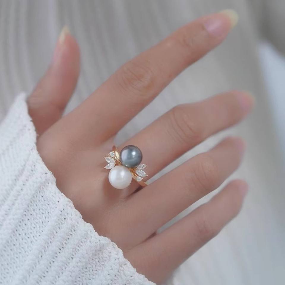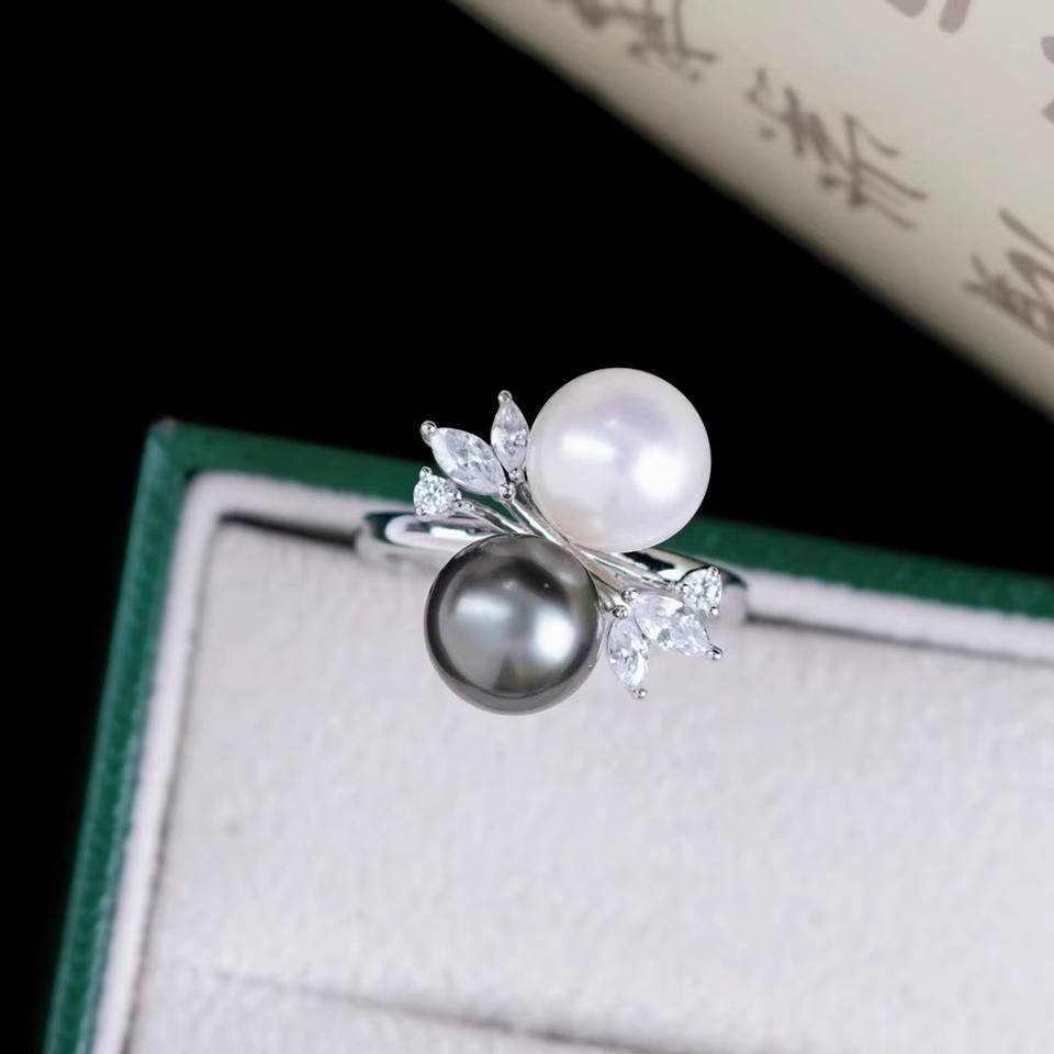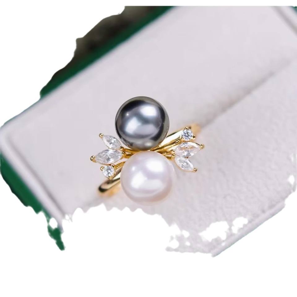 อุปกรณ์ DIY 10546 แหวนเงินแท้ S925 ตัวเปล่าสำหรับใส่เครื่องประดับ ตัวจับเครื่องประดับเงิน พร้อมลูกปัดกลมขนาด 8-10 มม. สำหรับแหวนมุก